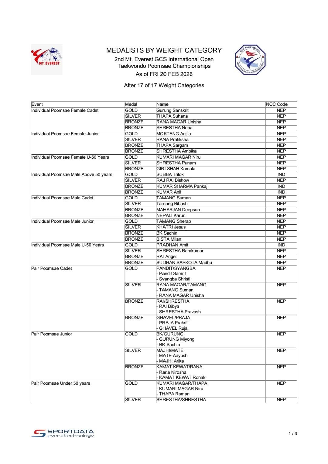 Congratulations 🎉 👏 to Nepali Para Athlete Ms. Renu Tamang and National Para Taekwondo Coach Mr. Kabiraj Negi Lama on securing a Bronze medal 🥉 for Nepal at the 2025 Youth Asian Para Games in Dubai, UAE.