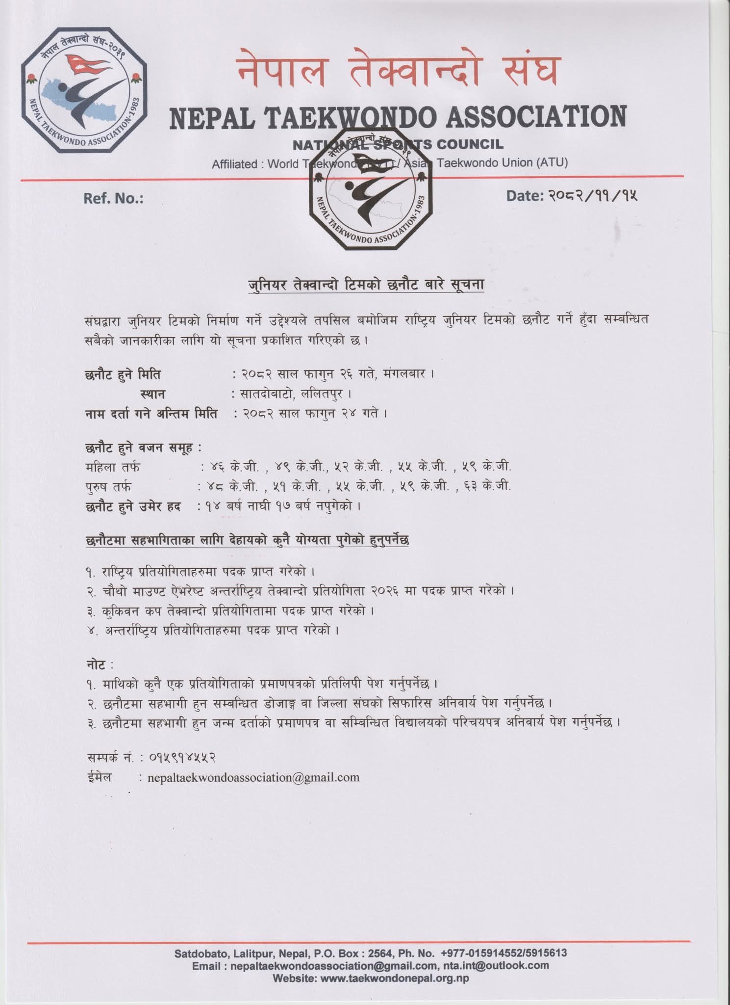 Farewell to our National Female Team along with Assistant Coach Ms. Sandipa Amgai for 5th Qatar Taekwondo Open Championships (G-1)